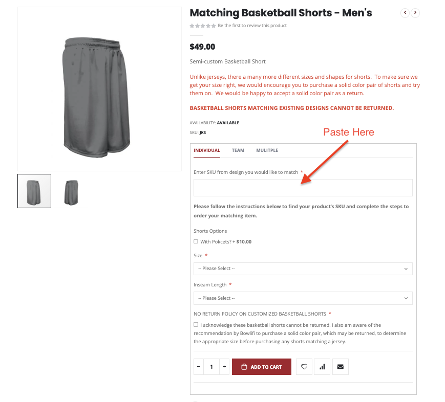 BASKETBALL SHORTS MATCHING EXISTING DESIGNS CANNOT BE RETURNED.